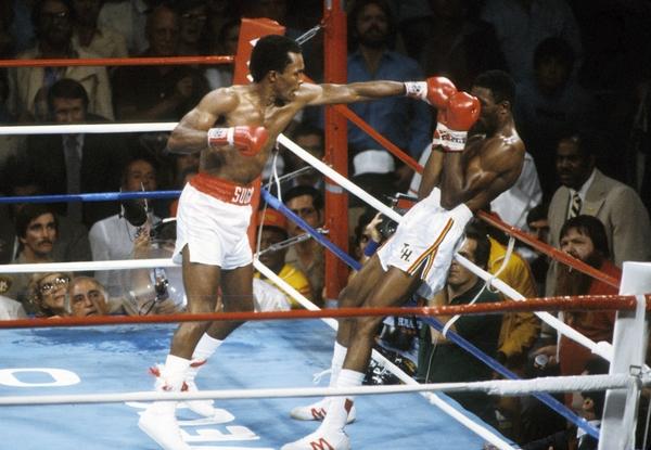 The fight began as expected, Leonard boxing from a distance and Hearns stalking. Leonard had difficulty with Hearns' long reach and sharp jab. By the end of round five, Leonard had a growing swelling under his left eye, and Hearns had built a considerable lead on the scorecards. I'd given all 5 rounds to Hearns, then the whole momentum changed in the 6th round, Leonard came straight out of the blocks & walked Heans down, hurt Hearns in the sixth with a left hook to the chin & a left hook to the body that nearly chopped Hearns in half, only the bell saved Tommy. Leonard battered Hearns in round seven, but Hearns miraculously regrouped. Hearns started to stick and move, and he started to pile up points again. The roles reversed: Leonard became the stalker and Hearns became the boxer.