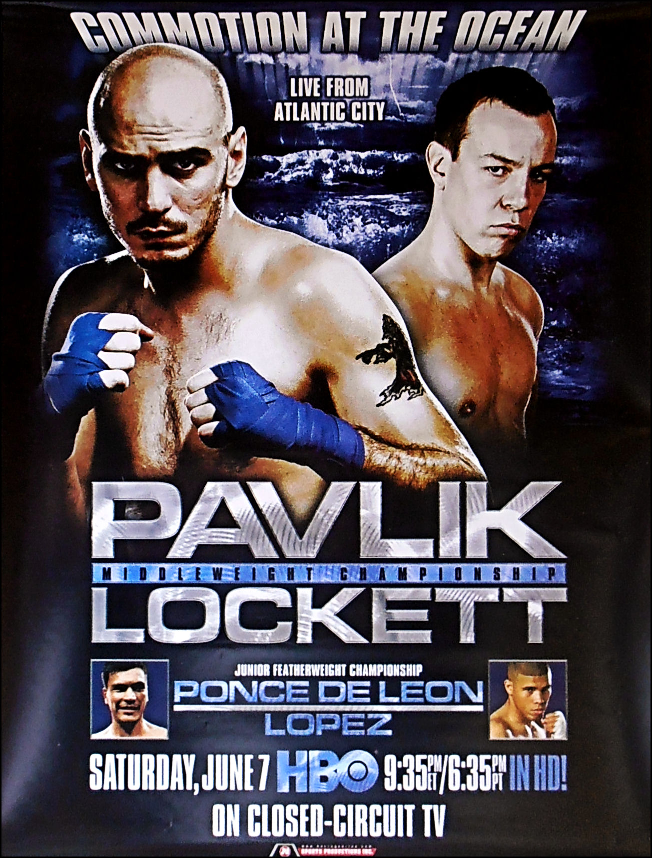 Description : Here we have an official HBO boxing closed circuit poster headlining Kelly Pavlik making his first title defense of the Middleweight Championship against the WBO #1 mandatory challenger Gary Lockett on June 7, 2008, at Boardwalk Hall in Atlantic City.