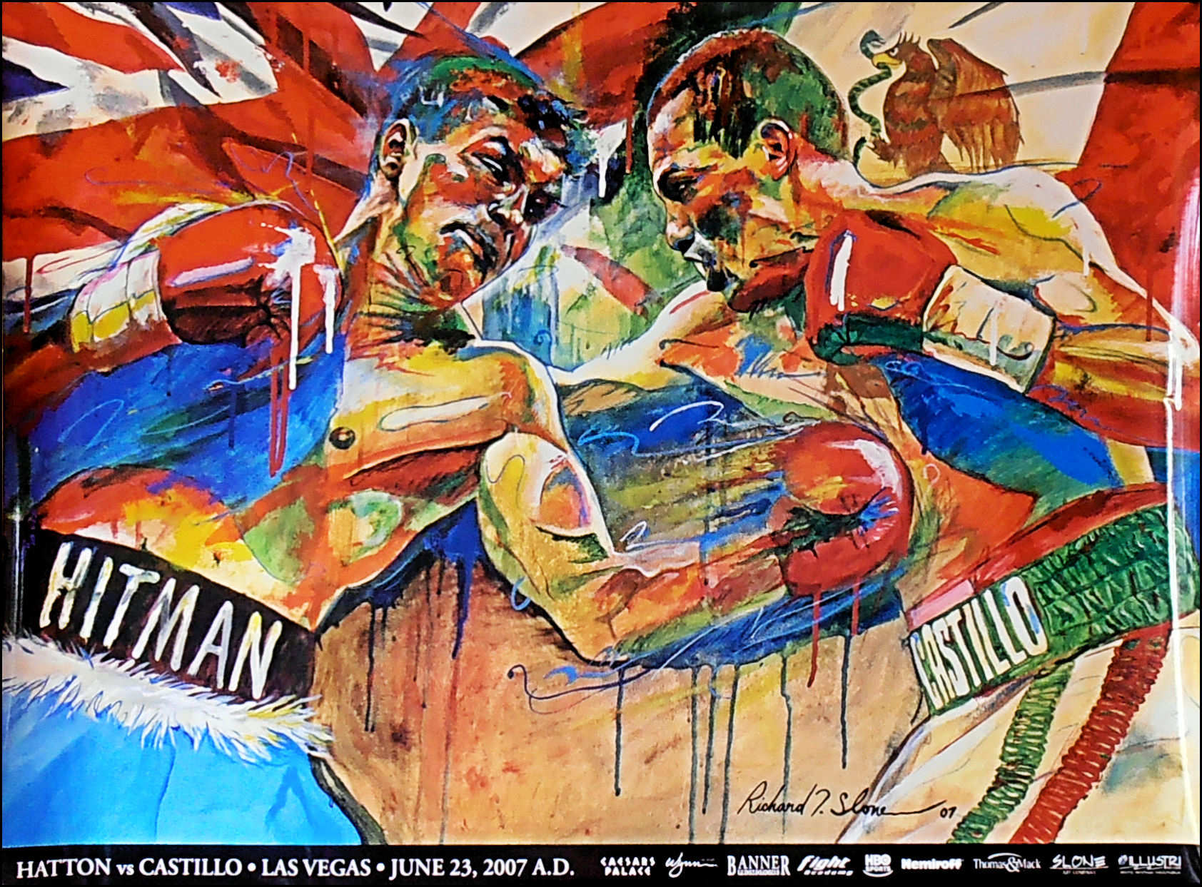 Ricky Hatton was forced to relinquish his IBF title again on 10 February to be able to fight Castillo. The fight was held on 23 June 2007, at the Thomas & Mack Center in Paradise, Nevada. As per usual Ricky took around 10,000 fans with him from England. Jose Luis Castillo was the former WBC Lightweight Champion who now had to move up into the higher division due to age & weight making problems, he was soon to be put to the sword by the dominant fighter of the division. In round four, Hatton landed a "perfect" left hook to the liver, which put Castillo to the canvas. Ricky later claimed that 4 of Castillo's ribs were broken with this one punch. Unable to stand up, Castillo was counted out for the first time in his career.