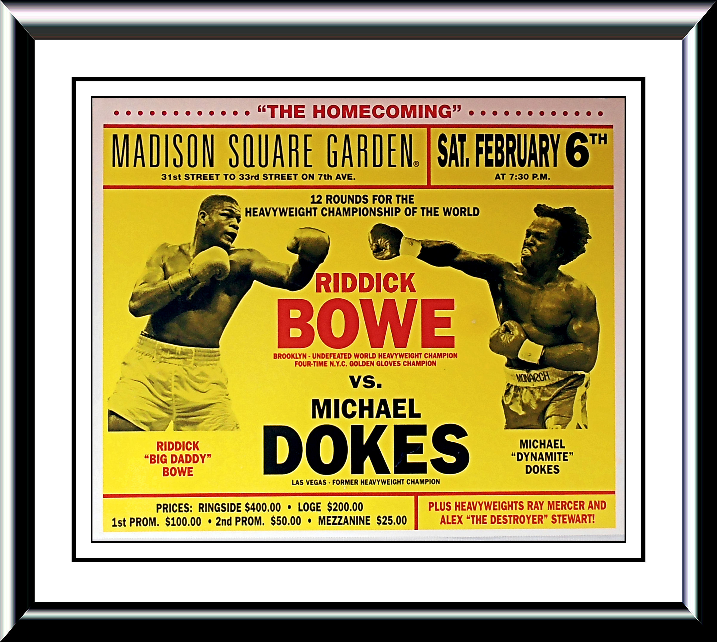 Description : Here we have an original onsite boxing poster for the fight billed as "The Homecoming" for the WBA, IBF and lineal world heavyweight championship title bout held at Madison Square Garden, New York, New York, USA, February 6, 1993.