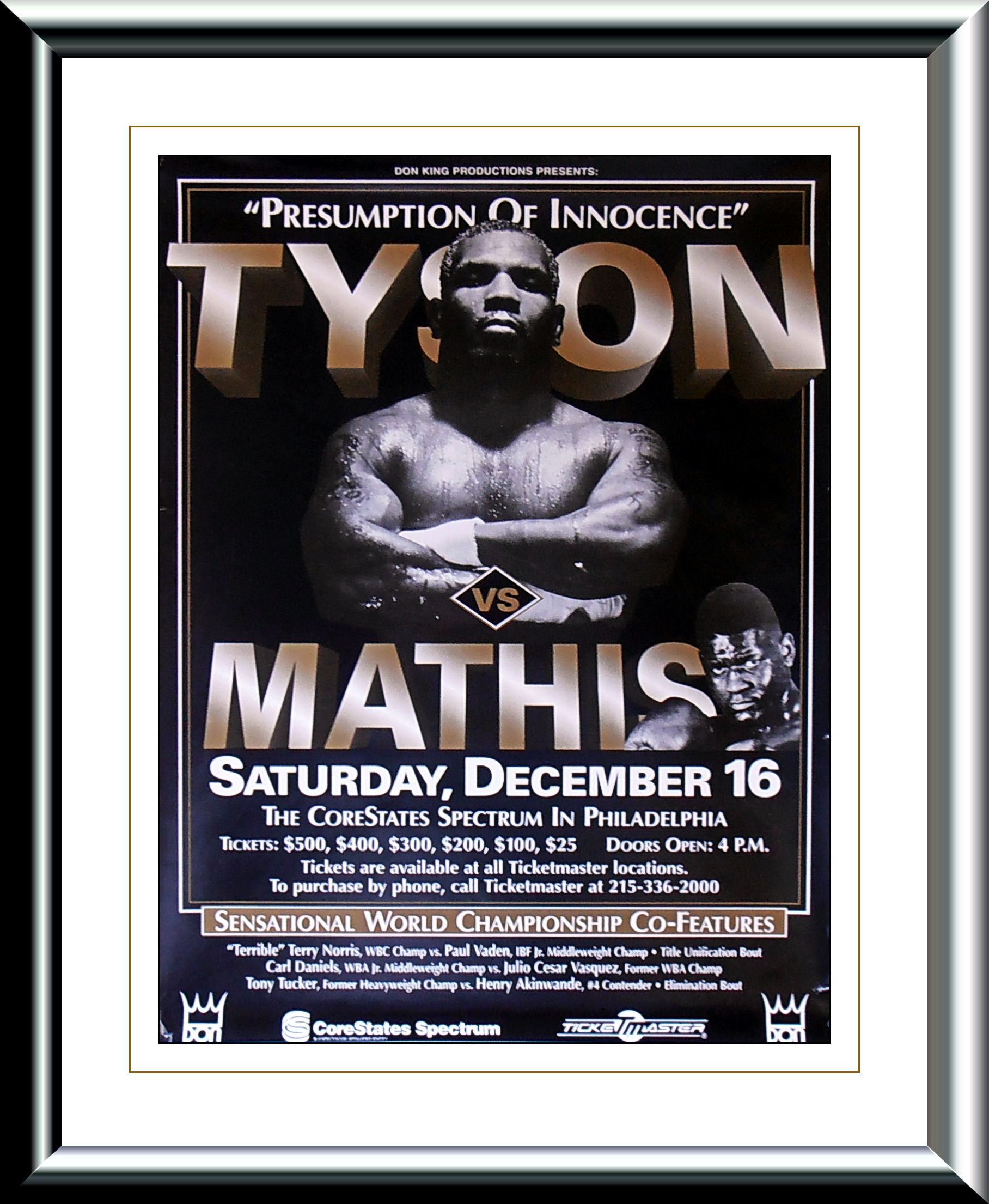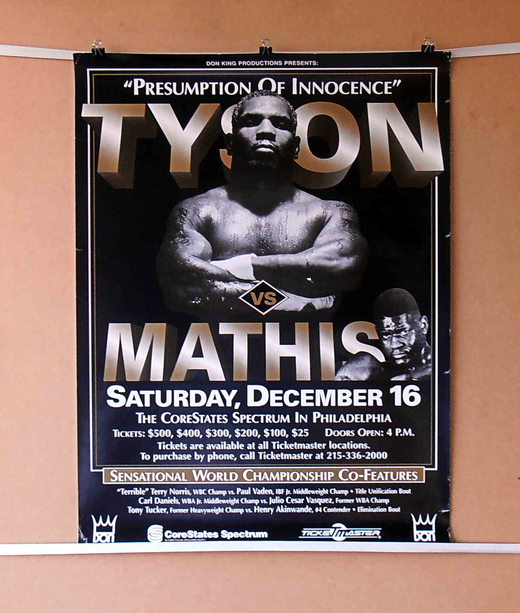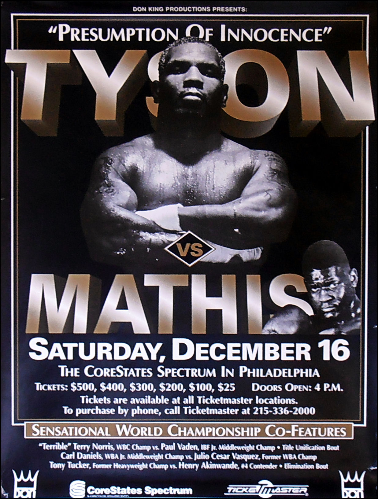 Description : Here we have the original Don King production onsite poster for the Mike Tyson v Buster Mathis Jr fight that was held at the Core States Spectrum Centre, Philadelphia on December 16, 1995.