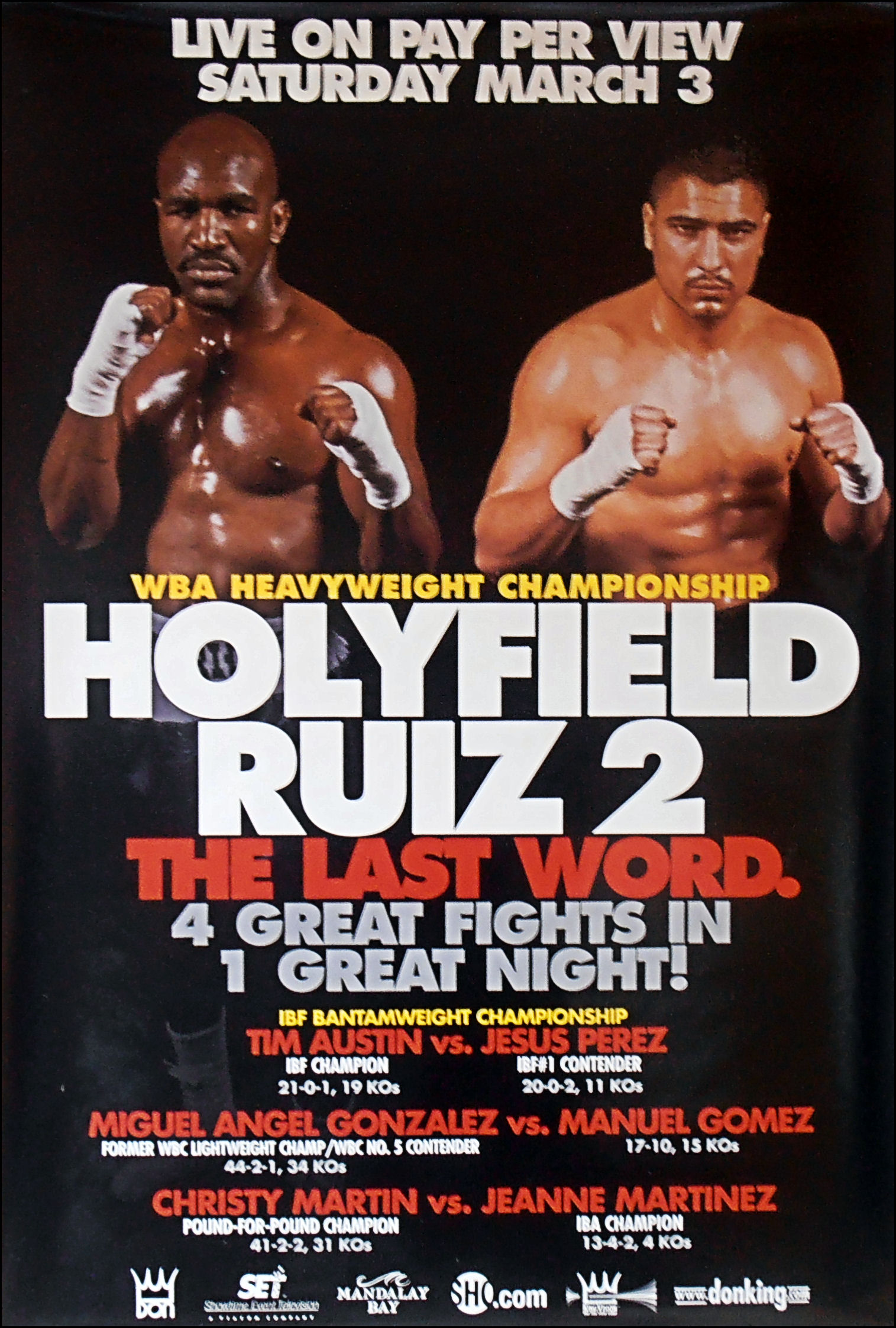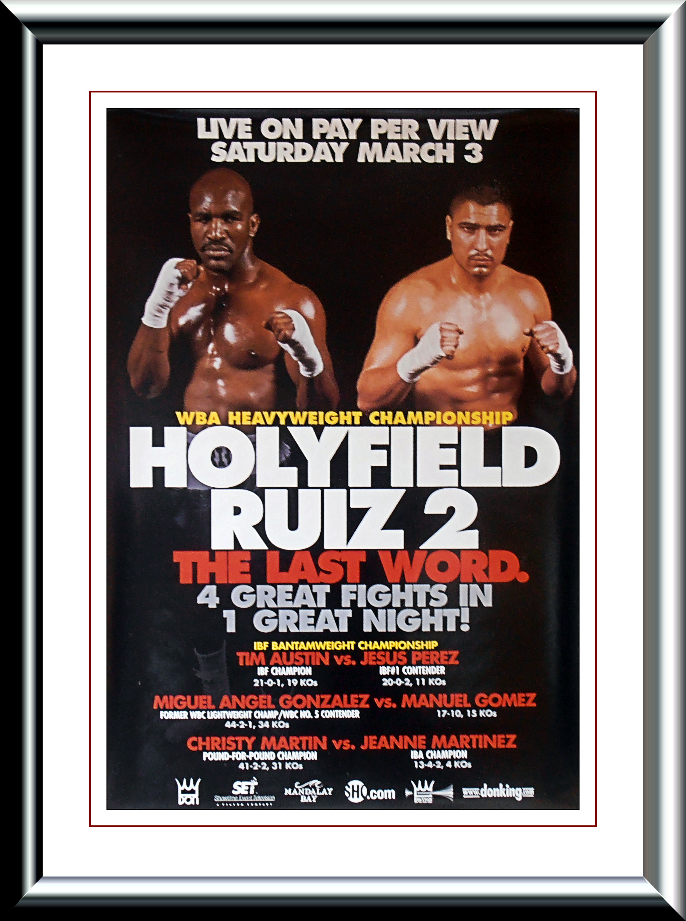 Description : Here we have an original Showtime PPV poster from for the rematch between Evander Holyfield & John (Juan) Ruiz for the WBA Heavyweight Title.
