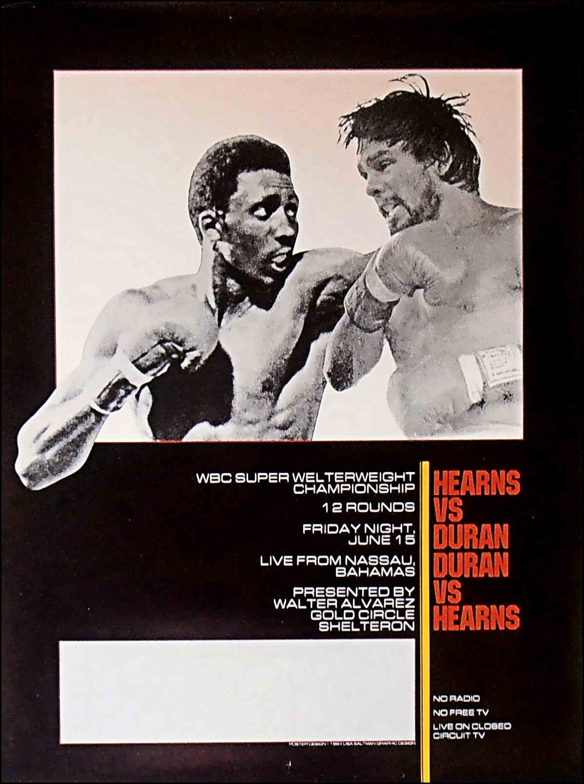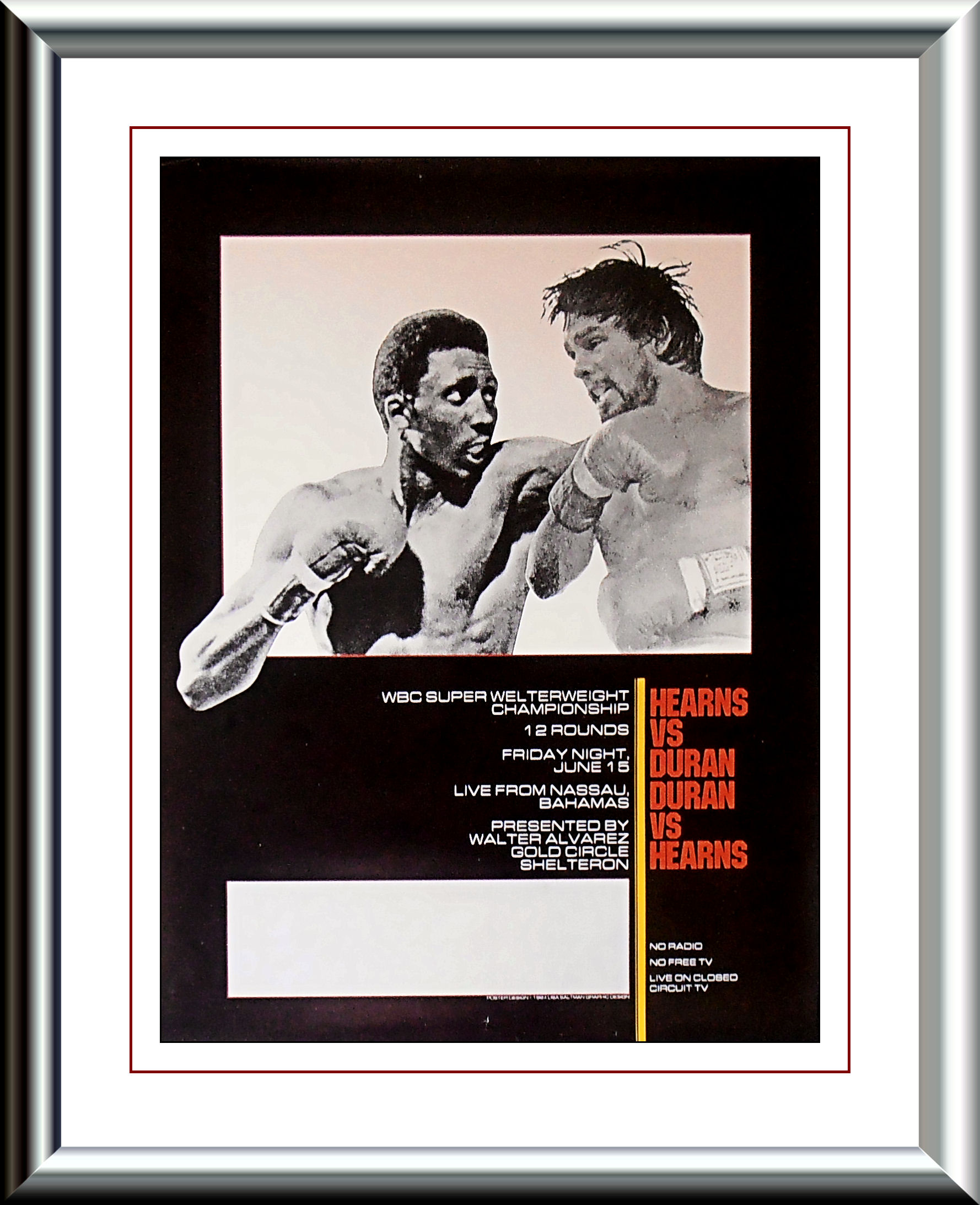 Description : Here we have a super rare closed circuit poster from the Bahamas where this fight was originally scheduled for but changed to Caesars Palace Las Vegas at the last minute.