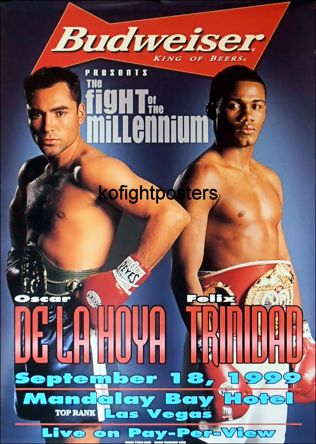 Description : Here we have the official Budweiser fight sponsors pay-per-view fight poster for the mega fight at the Mandalay Bay Las Vegas for the WBC/IBF Welterweight unification showdown.