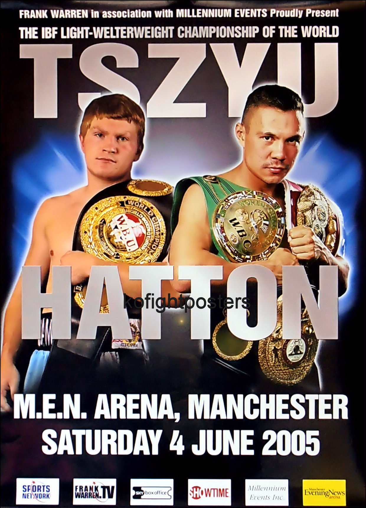 Description : Here we have the official Frank Warren promotions poster from that most historic night when Ricky "Hitman" Hatton won the IBF Light Welterweight Title when he defeated the great Kostya Tszyu.