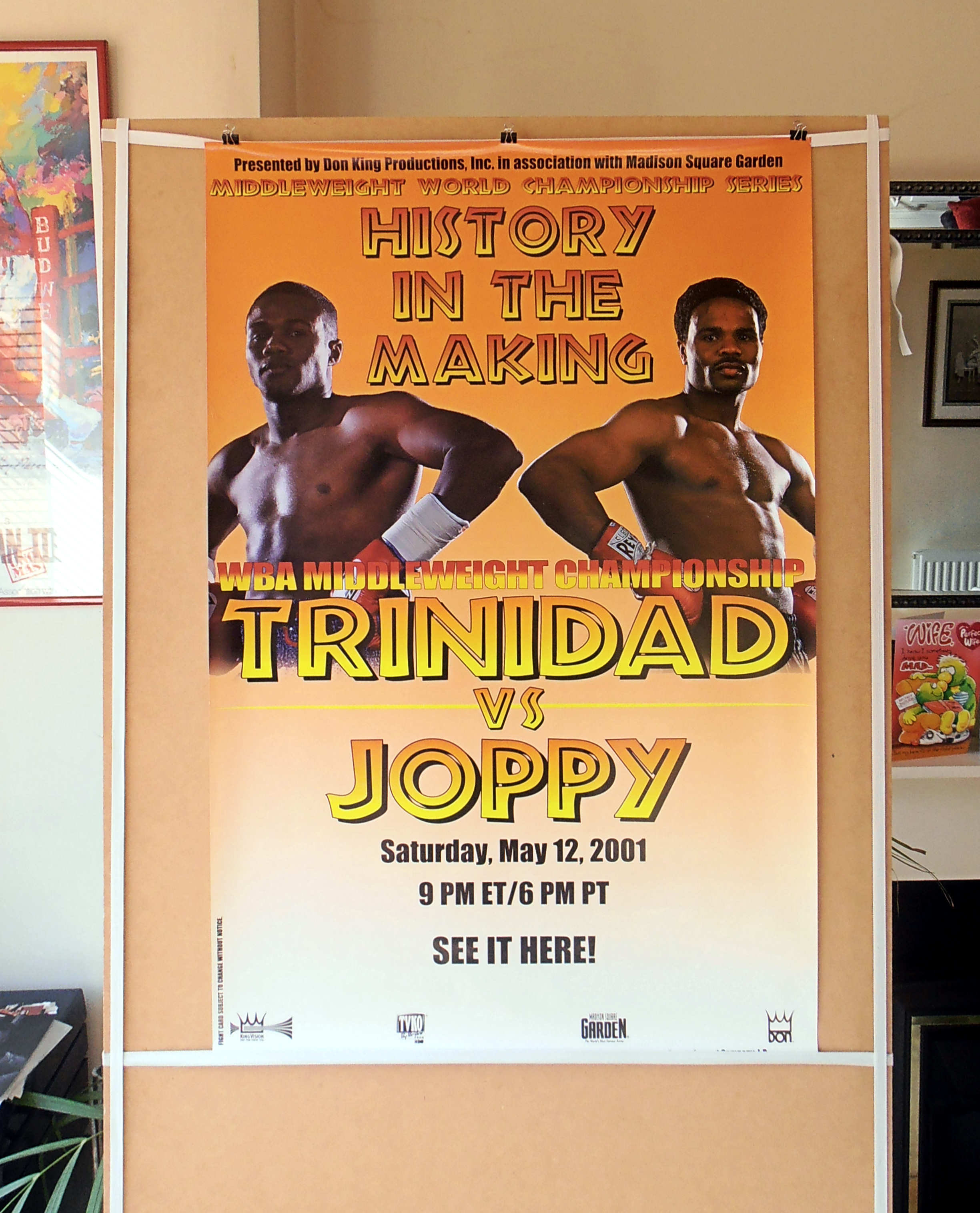 Following his fight with Vargas, Trinidad moved up in weight – this time to participate in Don King's middleweight unification tournament featuring IBF champion Bernard Hopkins, WBA champion William Joppy, and WBC champion Keith Holmes. Trinidad was matched with Joppy, whom he defeated by technical knockout in the 5th round of a contest that took place on May 12, 2001. Joppy opened the 1st round on the offensive, but late in the round Trinidad scored a knockdown with a combination of punches that came close to throwing Joppy underneath the ropes. Trinidad subsequently scored a knockdown in the 4th round, during this stage of the competition he was using combinations of left hooks and right punches to the head. In the 5th round Trinidad scored another knockdown, Joppy attempted to continue the fight, but while he was using the ropes to help him stand, the referee stopped the fight. When the contest was over, Trinidad explained his strategy by stating: "I knew he wanted to impose his will, his weight, and I wouldn't let him do it"
