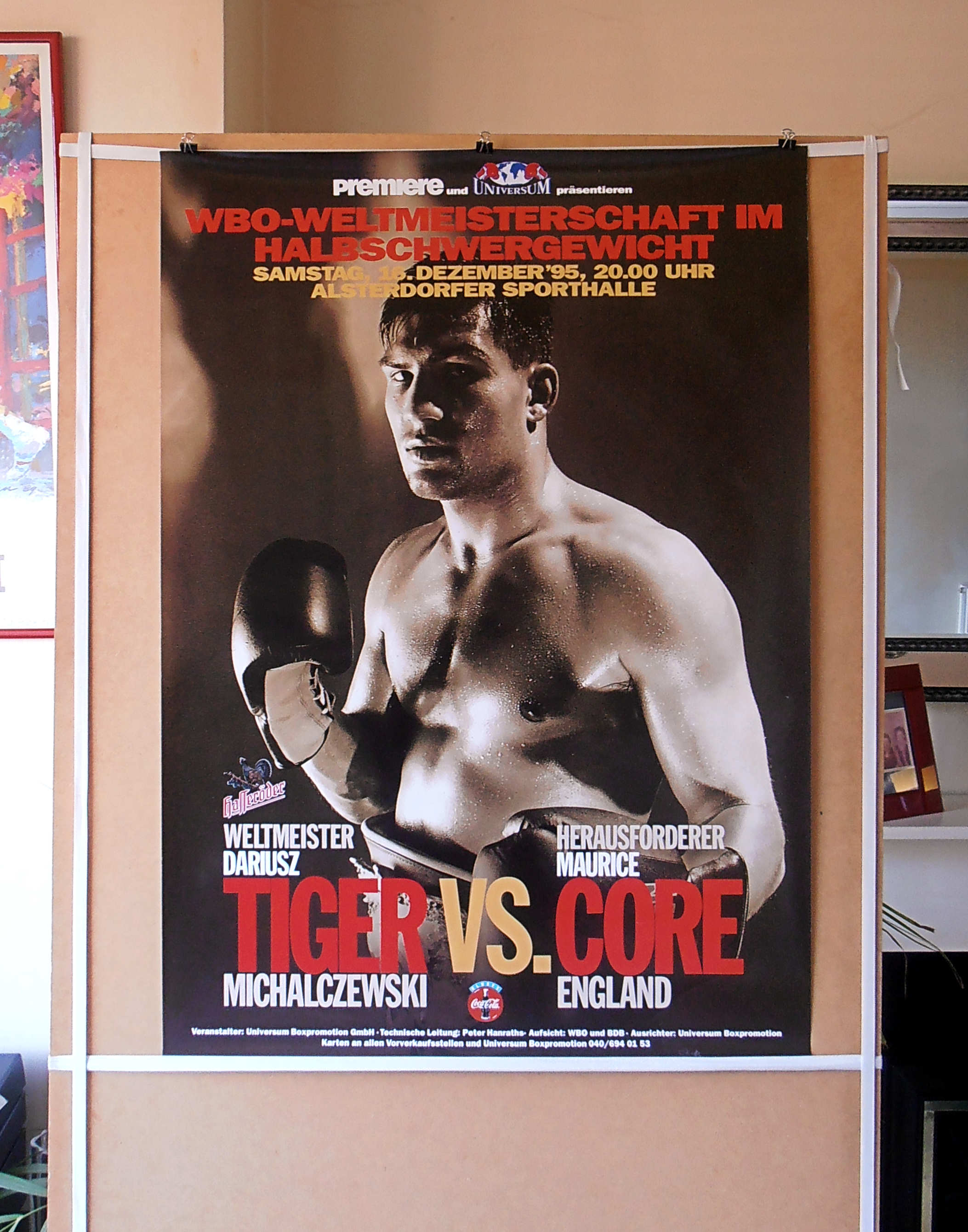 Description : Here we have an original (Cancelled Date) onsite poster for the WBO Light/Heavyweight championship between reigning & defending champion Dariusz Michalczewski & challenger Maurice 'Hard' Core from England. This fight got cancelled & no rescheduled date was made.