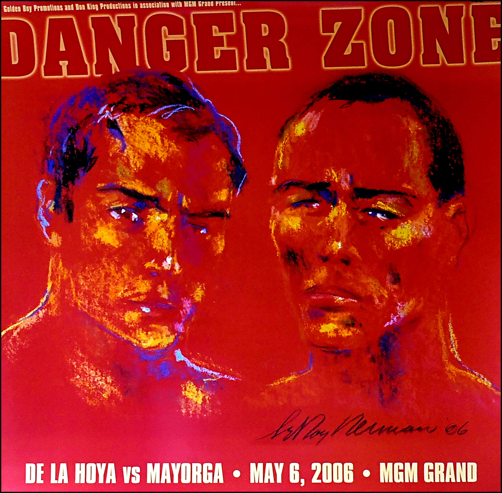 Description : Here we have an original MGM Grand Las Vegas, Leroy Neiman commissioned onsite poster for the Oscar De La Hoya v Ricardo Mayorga WBC Light/Middleweight showdown.
