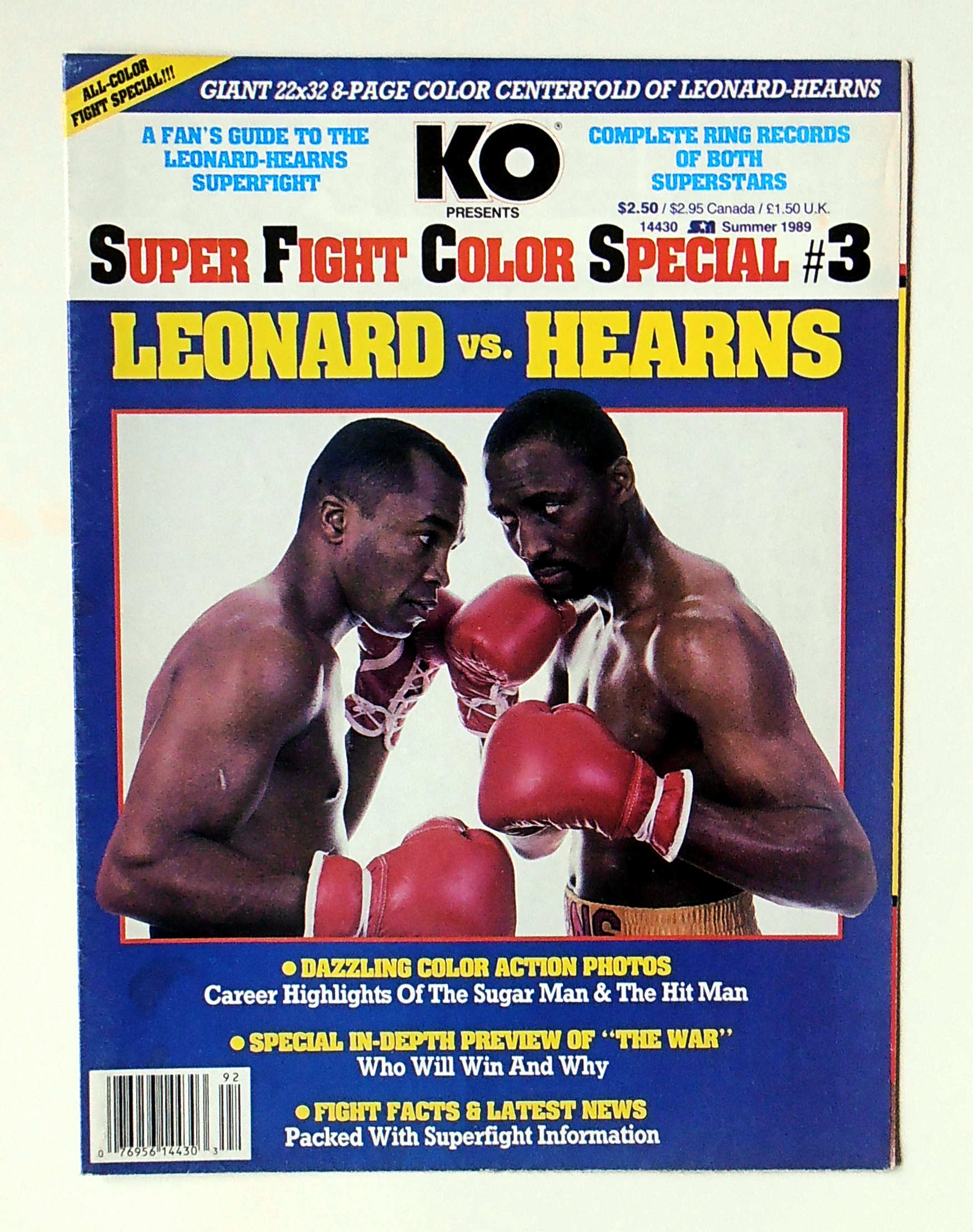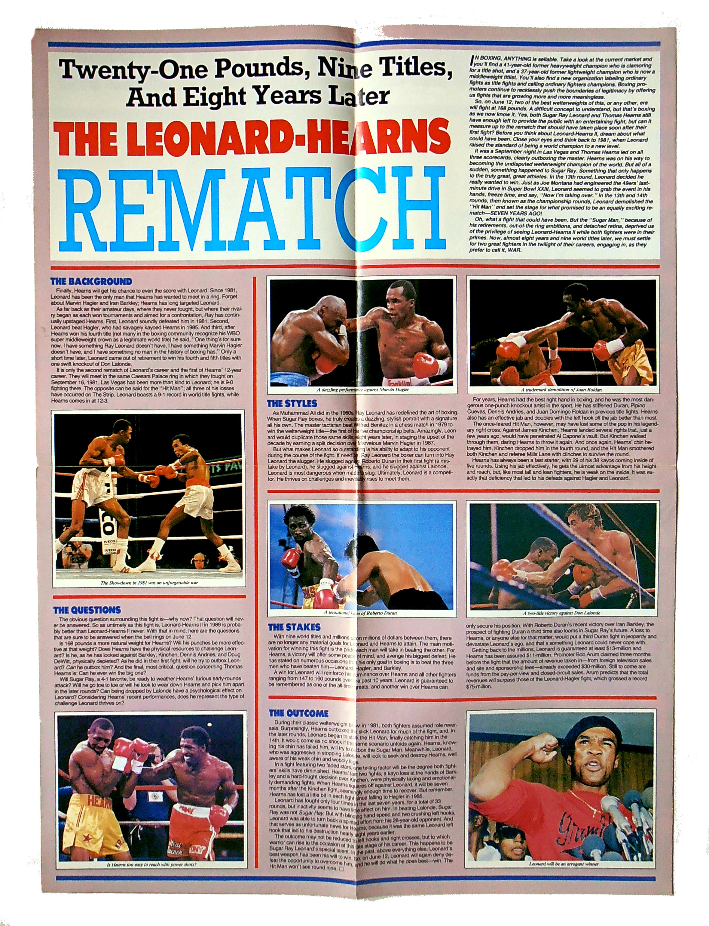 Description : Here we have a great KO magazine 8 page fold out super-fight special for the long overdue re-match between Leonard & Hearns at Caesars Palace Las Vegas.