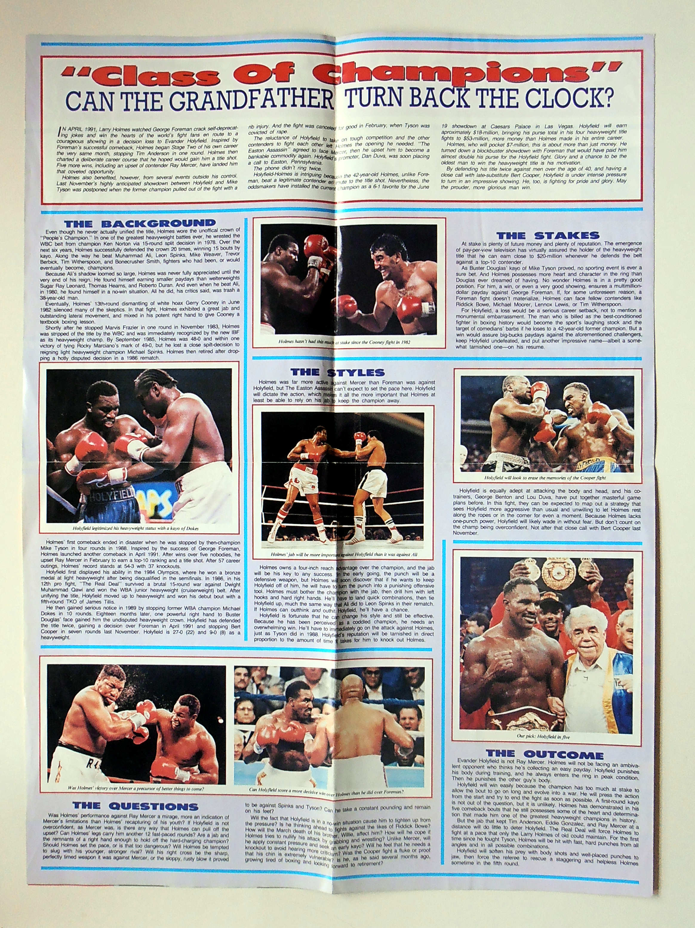 Description : Here we have a Ring Magazine special 8 page fold out poster for the SuperFight of 1992 from Caesars Palace, June 19, 1992 for the WBC,WBA,IBF and Lineal Heavyweight Championship.