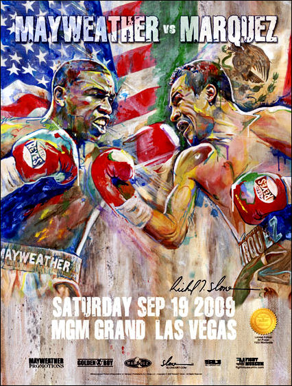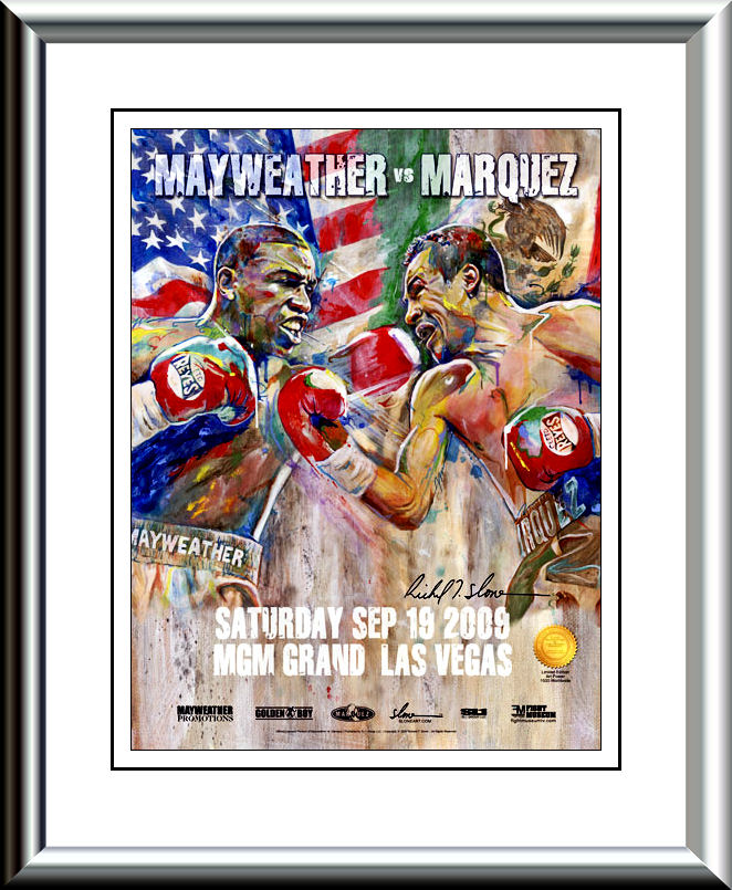Description : Official Slone art limited edition MGM Grand commissioned onsite poster from the Mega Fight at the MGM Grand Garden Arena in Las Vegas.