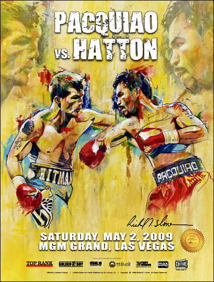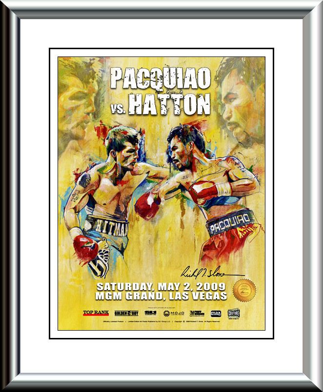 Description : Official Slone art limited edition MGM Grand commissioned onsite poster from the showdown at the MGM Grand Garden Arena in Las Vegas for the world Light-welterweight championship.