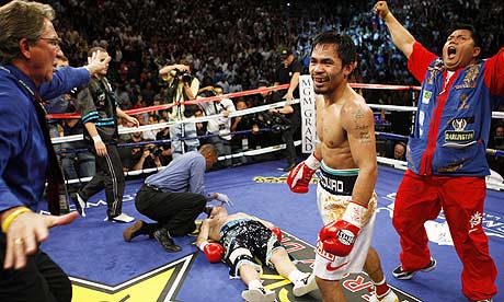 OMG! I was there that historic night when Manny Pacquiao flattened Ricky Hatton in two savage rounds of pure violence. I attended this massacre at the MGM Grand, had a great center seat & when Manny dropped the axe onto the lineal Lt/Welterweight Champion if sounded like a clap of thunder such was the brute force of the left hook that left poor Ricky Hatton flat on his back with every one in attendance of the mind to how serious Hatton was injured.....