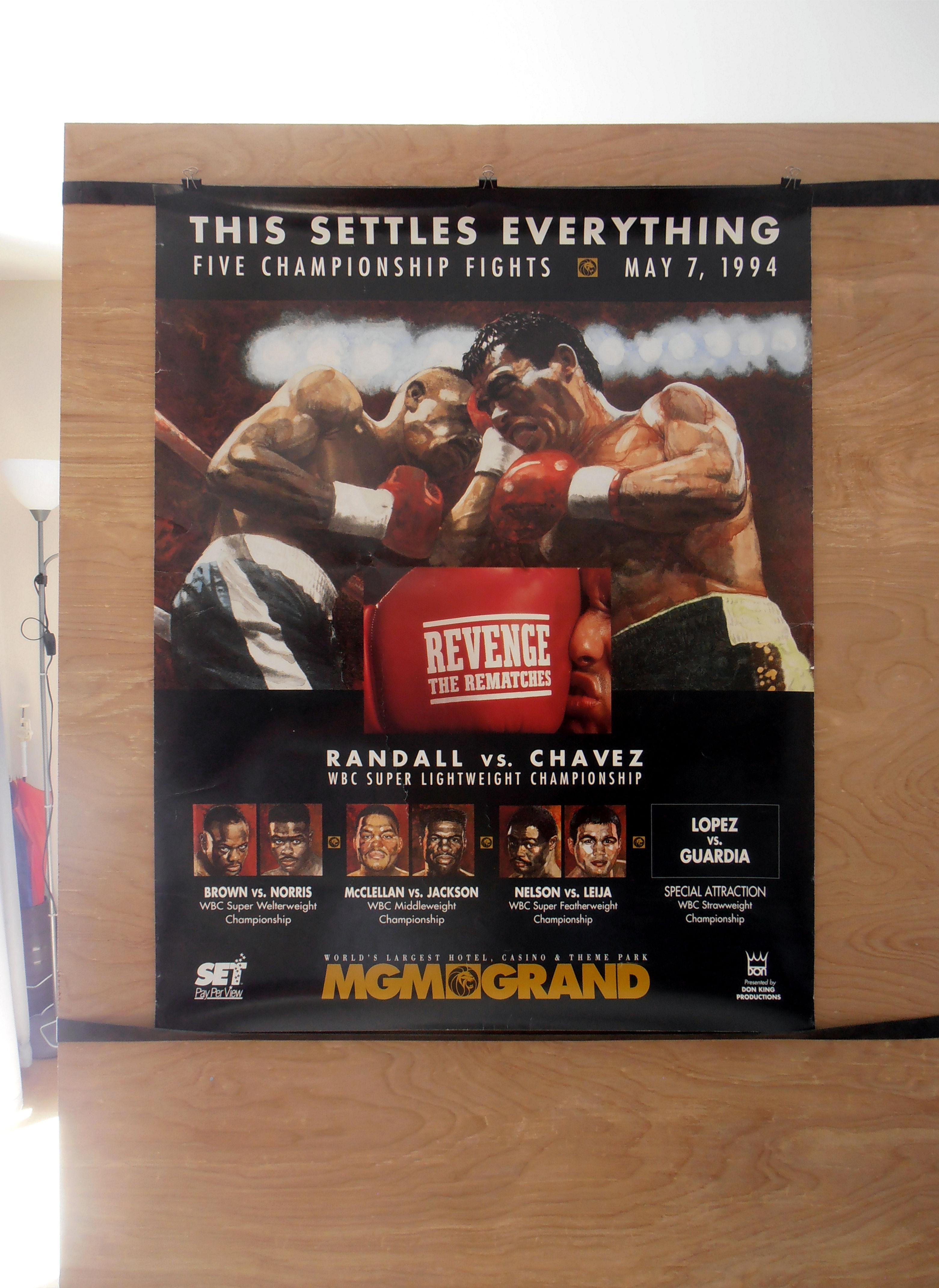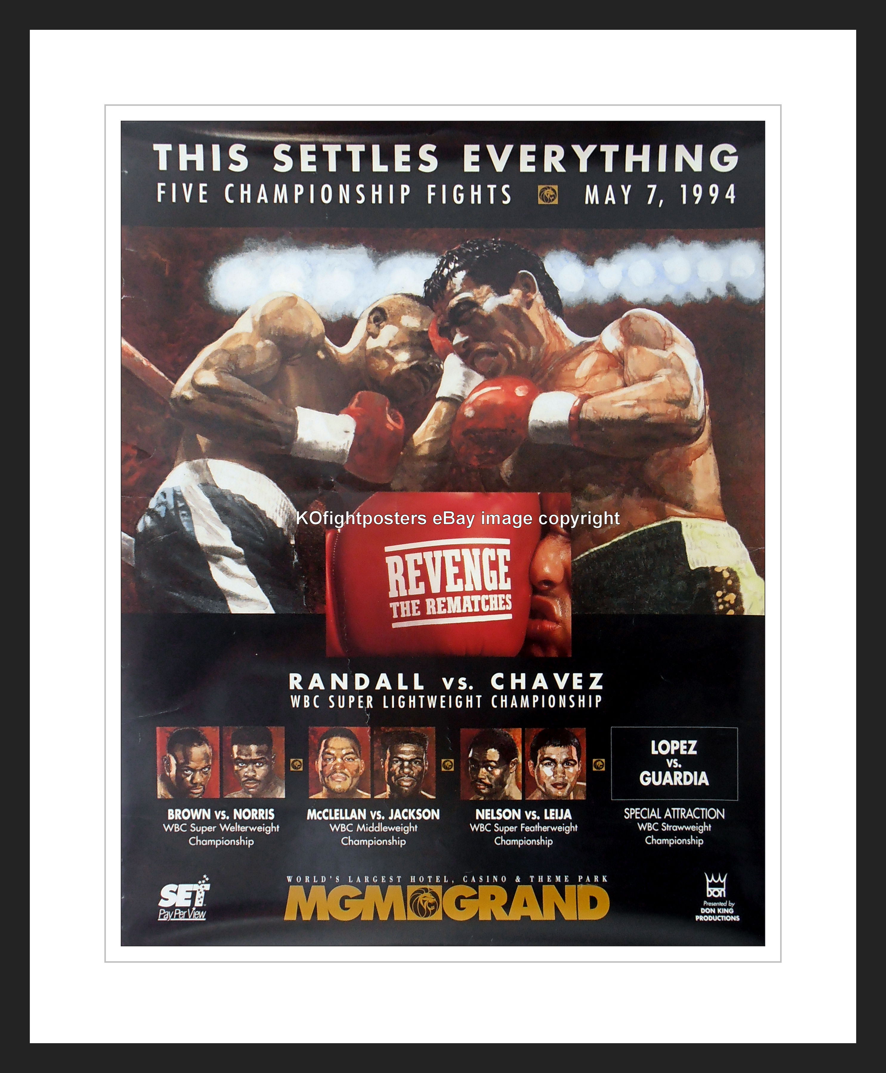 Description : Here we have an original & rare official MGM main event onsite poster for WBC super/lightweight rematch held at the MGM Grand Las Vegas, 7th May 1994.